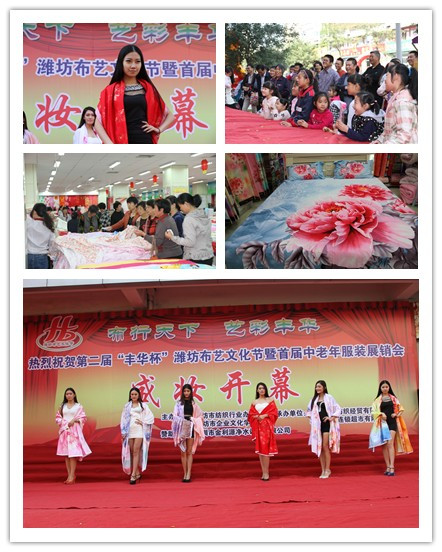 10月25日,由濰坊市紡織行業(yè)辦公室、濰坊市企業(yè)文化學(xué)會主辦的濰坊第二屆“豐華杯”布藝文化節(jié)在豐華連鎖超市民生店盛妝開幕。布藝傳承自然之美,服裝妝扮人生之美。當天上午,民生店門前彩旗飄揚,人頭攢動,伴隨著歡快的樂曲和布藝模特走秀等文藝表演,一場以布藝文化為主題的文化盛事進行得紅紅火火。賣場內(nèi)部搶購高潮迭起,場面火爆。